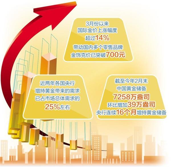 市場(chǎng)分析人士認(rèn)為,今年以來(lái),在美聯(lián)儲(chǔ)貨幣政策確定轉(zhuǎn)向的背景下,疊加近期地緣政治沖突激化,以及全球多國(guó)央行對(duì)黃金的持續(xù)需求,多因素共同推動(dòng)了國(guó)際金價(jià)的強(qiáng)勁上漲。