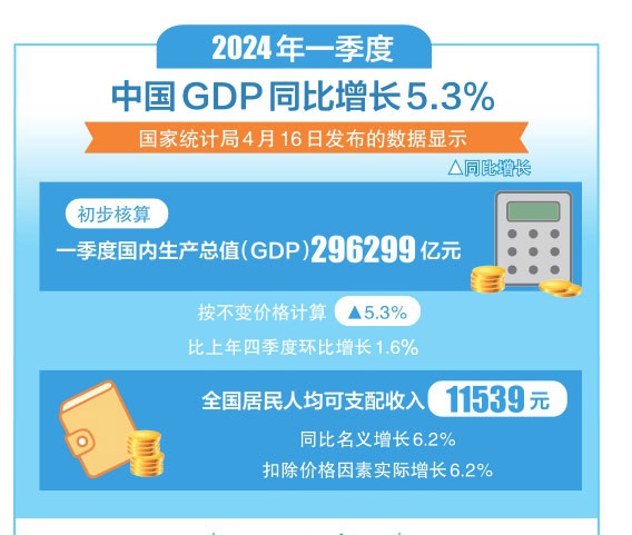 4月16日,中國經(jīng)濟(jì)2024年首季報(bào)出爐。國內(nèi)生產(chǎn)總值同比增長5.3%,固定資產(chǎn)投資同比增長4.5%,高技術(shù)產(chǎn)業(yè)投資同比增長11.4%……一季度,中國經(jīng)濟(jì)增長較快、質(zhì)效向好,實(shí)現(xiàn)良好開局。但嚴(yán)峻復(fù)雜形勢下,有效需求不足、社會預(yù)期偏弱等問題仍然存在,還需進(jìn)一步鞏固和增強(qiáng)經(jīng)濟(jì)回升向好態(tài)勢。
