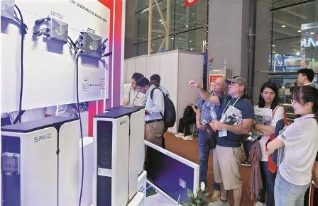 4月16日,采購(gòu)商在第135屆廣交會(huì)上了解太陽(yáng)能發(fā)電設(shè)備。電動(dòng)載人汽車(chē)(新能源汽車(chē))、鋰電池和太陽(yáng)能電池被稱(chēng)為我國(guó)外貿(mào)“新三樣”。統(tǒng)計(jì)數(shù)據(jù)顯示,2023年,我國(guó)出口機(jī)電產(chǎn)品當(dāng)中,電動(dòng)載人汽車(chē)、鋰電池和太陽(yáng)能電池等“新三樣”產(chǎn)品合計(jì)出口1.06萬(wàn)億元,首次突破萬(wàn)億大關(guān)?!靶氯龢印鳖I(lǐng)跑出口,激發(fā)外貿(mào)新動(dòng)能,推進(jìn)中國(guó)經(jīng)濟(jì)高質(zhì)量發(fā)展。本屆廣交會(huì)上,“新三樣”相關(guān)展區(qū)“光電鋰”交易持續(xù)火爆。 新華社記者 盧漢欣 攝