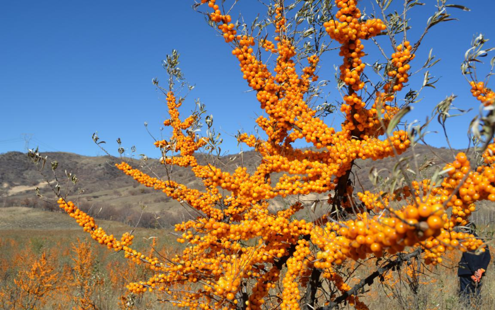 沙棘果實(shí)含有豐富的營養(yǎng)物質(zhì),被譽(yù)為“維生素C之王”。沙棘的根、莖、葉、花、果,可廣泛應(yīng)用于食品、醫(yī)藥、輕工、航天、農(nóng)牧漁業(yè)等領(lǐng)域。