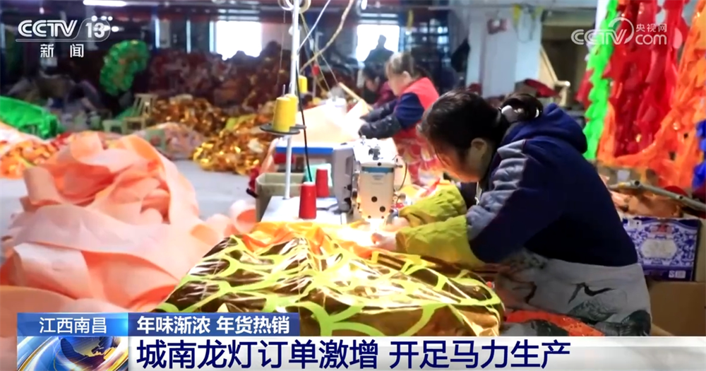 江西南昌的城南龍燈有著700多年的制作歷史。春節(jié)前,當(dāng)?shù)爻悄淆垷羯a(chǎn)基地訂單激增。數(shù)百平方米的廠房?jī)?nèi),設(shè)置了龍頭、龍身、龍衣、龍尾等制作區(qū),50多名工人都在有條不紊地完成自己的工序。在發(fā)貨區(qū),師傅們忙著裝貨打包,趕在年前給來自全國和海外的訂單發(fā)貨。