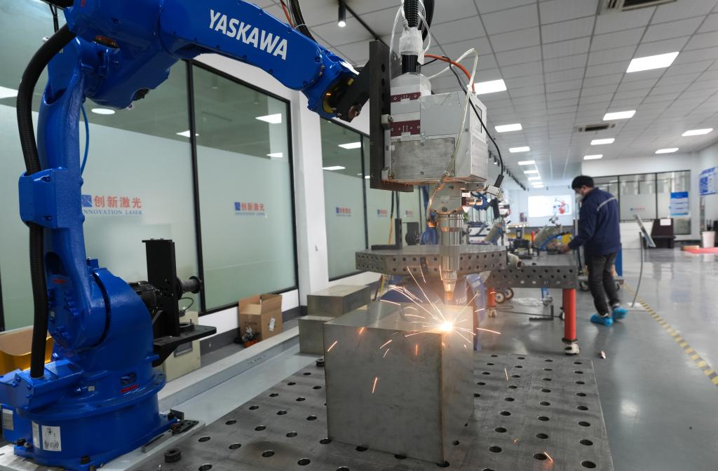 1月7日,紹興市上虞區(qū)浙江創(chuàng)新激光設(shè)備有限公司的機(jī)械臂對(duì)不銹鋼產(chǎn)品進(jìn)行無(wú)縫激光焊接。 新華社照片,紹興(浙江)(2025年1月7日)新華社記者 翁忻旸 攝