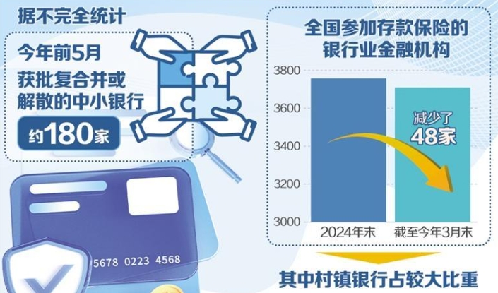 中小銀行是我國金融體系的重要組成部分,也是推動區(qū)域經(jīng)濟發(fā)展和服務實體經(jīng)濟的生力軍。今年以來,我國中小銀行改革重組步伐加快,多地的村鎮(zhèn)銀行、農(nóng)商銀行等金融機構被吸收合并重組,將在金融機構名單上加速消失。據(jù)不完全統(tǒng)計,今年前5月,約180家中小銀行獲批復合并或解散。