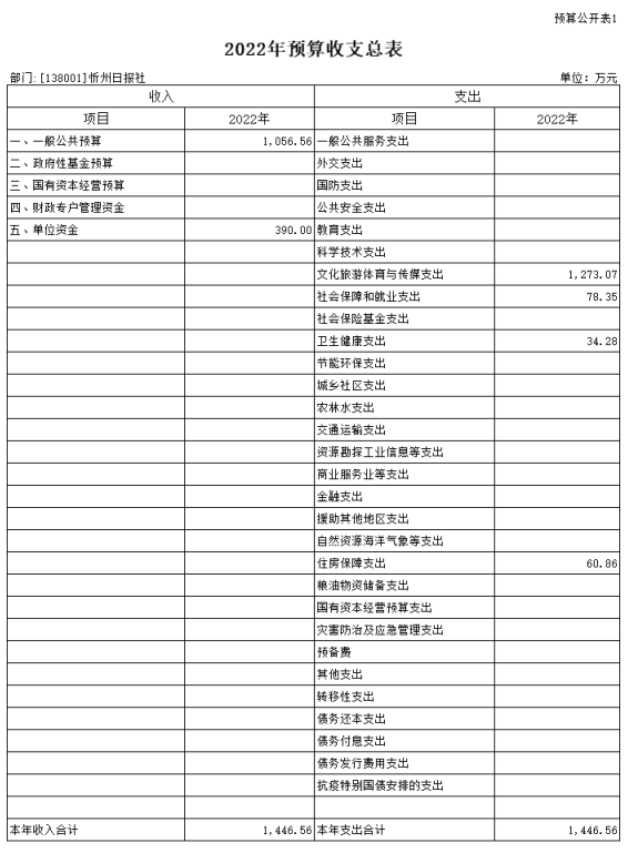 第二部分2022年度忻州日報(bào)社預(yù)算報(bào)表