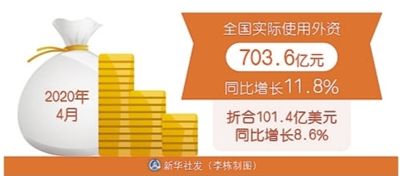 本報(bào)北京5月14日電 (記者王珂)商務(wù)部14日舉行的網(wǎng)上例行新聞發(fā)布會(huì)上,商務(wù)部新聞發(fā)言人高峰介紹,4月,全國實(shí)際使用外資703.6億元,同比增長11.8%。