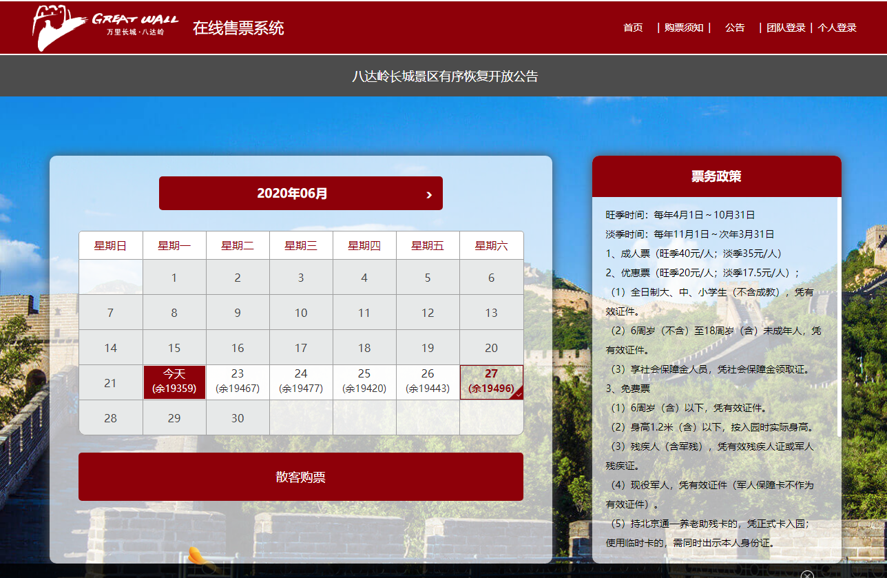 記者注意到,截至6月22日,北京最熱門(mén)的景區(qū)之一八達(dá)嶺長(zhǎng)城在端午期間每日仍有近2萬(wàn)票。不過(guò)故宮博物院門(mén)票已售罄。