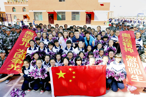 圖為體育健兒與繁峙縣活動(dòng)現(xiàn)場(chǎng)的同學(xué)們合影留念。