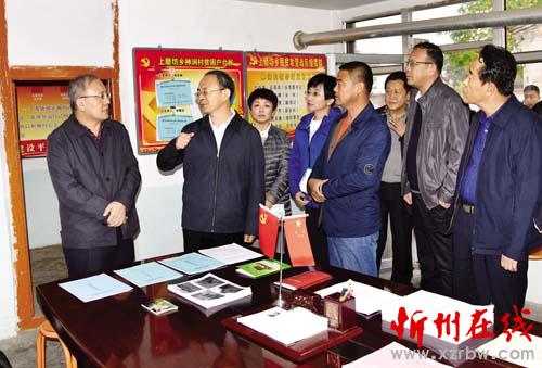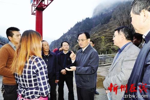 圖為市委副書記、 市長鄭連生在代縣神澗村與縣鄉(xiāng)村干部探討農(nóng)村貧困人口脫貧大計(jì)。 石俊文 攝