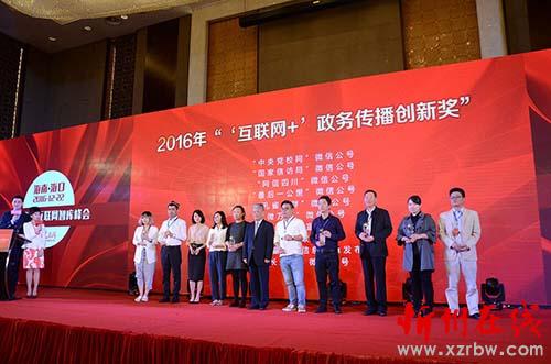 本報(bào)訊 12月22日,首屆全國(guó)互聯(lián)網(wǎng)智庫(kù)峰會(huì)暨第四屆網(wǎng)絡(luò)輿情論壇在海南省??谑新≈卣匍_。中央及各?。ㄊ小⒆灾螀^(qū))宣傳和網(wǎng)信部門領(lǐng)導(dǎo)、國(guó)內(nèi)業(yè)界知名專家、學(xué)者、政務(wù)新媒體代表等200余人齊聚一堂,圍繞“‘十三五’供給側(cè)改革背景下輿論新格局”主題,深入探討互聯(lián)網(wǎng)內(nèi)容建設(shè)與供給、政務(wù)輿情回應(yīng)和引導(dǎo)的新理念、新思路、新格局。會(huì)議期間,舉行了2016年“互聯(lián)網(wǎng)+政務(wù)傳播創(chuàng)新獎(jiǎng)”、“政務(wù)輿情回應(yīng)優(yōu)秀獎(jiǎng)”、“城市新媒體傳播優(yōu)秀獎(jiǎng)”和“全國(guó)政法新媒體建設(shè)優(yōu)秀獎(jiǎng)”頒獎(jiǎng)儀式。忻州隨手拍榮獲2016年全國(guó)“互聯(lián)網(wǎng)+政務(wù)傳播創(chuàng)新獎(jiǎng)”,為十佳之一。