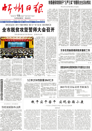 1月18日,全市脫貧攻堅(jiān)誓師大會(huì)召開(kāi),標(biāo)志著我市的脫貧攻堅(jiān)戰(zhàn)正式打響。一年來(lái),全市上下深入貫徹落實(shí)中央扶貧開(kāi)發(fā)工作會(huì)議特別是習(xí)近平總書(shū)記關(guān)于堅(jiān)決打贏脫貧攻堅(jiān)戰(zhàn)的重要講話(huà)精神,堅(jiān)持以脫貧攻堅(jiān)統(tǒng)攬經(jīng)濟(jì)社會(huì)發(fā)展全局,全面落實(shí)“3659”脫貧攻堅(jiān)策略和“4433”實(shí)施辦法,全年完成貧困村出列589個(gè),貧困人口脫貧8.73萬(wàn)人,106個(gè)戶(hù)籍人口50人以下貧困行政村整村搬遷有序推進(jìn)。(2016年1月19日《忻州日?qǐng)?bào)》)