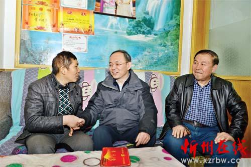 市委副書記、市長鄭連生在原平市慰問磷肥廠下崗職工李建義。