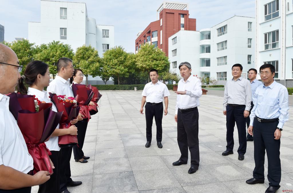 在第39個(gè)教師節(jié)到來之際,9月7日,市委書記朱曉東來到忻州市第一中學(xué)、忻州市第五中學(xué)和忻州市七一路小學(xué),看望慰問一線教師,代表市委、市政府向全市廣大教師和教育工作者致以節(jié)日祝賀和誠摯問候。他強(qiáng)調(diào),教育興則國家興,教育強(qiáng)則國家強(qiáng)。全市上下要深刻領(lǐng)會(huì)習(xí)近平總書記在中共中央政治局第五次集體學(xué)習(xí)時(shí)關(guān)于建設(shè)教育強(qiáng)國的重要講話精神,全面貫徹黨的教育方針,落實(shí)立德樹人根本任務(wù),以為黨育人、為國育才為根本目標(biāo),大力培養(yǎng)擔(dān)當(dāng)民族復(fù)興大任的時(shí)代新人。市委常委、秘書長溫建軍及市直相關(guān)部門負(fù)責(zé)同志參加。