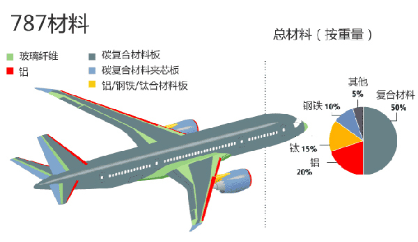 787飛機(jī)的碳纖維復(fù)合材料使用量占到了全機(jī)體積的80%。從航空領(lǐng)域到汽車工業(yè)上的應(yīng)用,碳纖維復(fù)合材料對(duì)于工程產(chǎn)品的關(guān)鍵意義就在于輕質(zhì)高強(qiáng)。汽車上常用的碳纖維增強(qiáng)樹脂基復(fù)合材料的密度為1.5-2.0g/立方厘米,這只有普通碳鋼的1/4-1/5,比常用的鋁合金還要輕1/3左右,但碳纖維復(fù)合材料的機(jī)械性能優(yōu)于金屬材料,其抗拉強(qiáng)度高于鋼材3-4倍,剛度高于鋼材2-3倍。