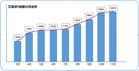 和SUV市場相比,自主品牌在轎車領域的表現(xiàn)一直差強人意,但是,今年奇瑞推出的一款中級家轎可謂是出盡風頭,上市253天銷量突破10萬輛,11月份銷量達到16973輛,刷新了自主轎車新車型銷量增速記錄。在11月份舉辦的廣州國際車展期間,艾瑞澤5更是一口氣拿了11項大獎,堪稱拿獎拿到手軟。