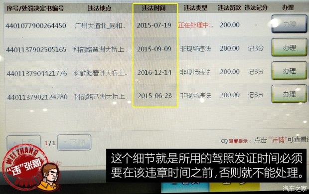 “違”張哥這個(gè)系列的選題原本都是我的同事張欣在更新,而我(廣州分站編輯陳海傭)平時(shí)很少寫用車類文章,但每次只要寫就說明我又?jǐn)偵鲜铝恕_@次比較尷尬,在春節(jié)放假前夕,因?yàn)檫`章過多被交警扣留行駛證。表面是把違章處理完就能拿回行駛證,可沒想到整個(gè)過程竟是如此一波三折,很多細(xì)節(jié)需要注意。據(jù)統(tǒng)計(jì),在今年春節(jié)期間,就有超過220萬(wàn)多條違章產(chǎn)生,不知道大家有沒有中招。如果有并且違章次數(shù)超過三次,那就要特別注意了,也希望我這次親身經(jīng)歷的分享能夠給大家一些啟發(fā)。