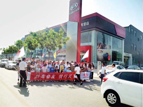 活動當天天氣晴朗,店內工作人員從早上7點半開始就陸續(xù)到店進行準備工作,8點開始車友們陸續(xù)到店,將車順序停好后便有條不紊地進行報名和簽協議工作,維修技師忙著檢查車輛,銷售顧問忙著粘貼車貼、會徽和車號牌。到8點30分的時候,車友報到工作順利就緒,接著車友會工作人員又進行了車輛安全知識和路途注意事項的提醒與活動行程的安排,然后全體車友會成員和工作人員一起合影留念。9點半以后23輛起亞車帶著東風悅達起亞的文化和祝福,浩浩蕩蕩出發(fā)了,行程中車隊引來了路人的圍觀與矚目。