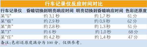 此次測試,車天下君準備一個“黑盒子”,里面放置一個屏幕常亮的智能手機。在“黑盒子”外面,放置另外一個屏幕常亮的智能手機。切換時間控制在0.3秒之內,分為“明到暗”和“暗到明”兩個環(huán)節(jié),記錄行車記錄儀場景切換時的響應時間。由測試結果一覽表可以看到,參與測試5個型號的行車記錄儀的響應時間都不盡相同:短則1秒,長則6秒。車天下君歸納如下,質量合格的行車記錄儀從昏暗切換到明亮環(huán)境的響應時間應在3~4秒之間,從明亮切換到昏暗環(huán)境當中的響應時間應該在1~2秒之內。