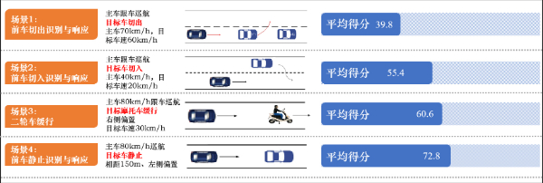 2022年,中汽中心首次新增輔助駕駛測(cè)評(píng)板塊,對(duì)智能網(wǎng)聯(lián)汽車的輔助駕駛系統(tǒng)進(jìn)行全面綜合評(píng)價(jià)。結(jié)果顯示,參與測(cè)試的22款熱銷車型,輔助駕駛綜合表現(xiàn)平均得分僅52.9,最高得分87.0,有些受測(cè)車型沒有配備輔助駕駛功能,則得分為0。