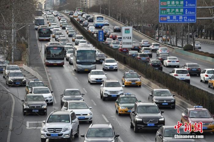 資料圖:北京東三環(huán)長(zhǎng)虹橋上車流如梭。