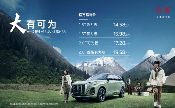 官方指導(dǎo)價(jià)14.58萬(wàn)起 紅旗HS3正式上市