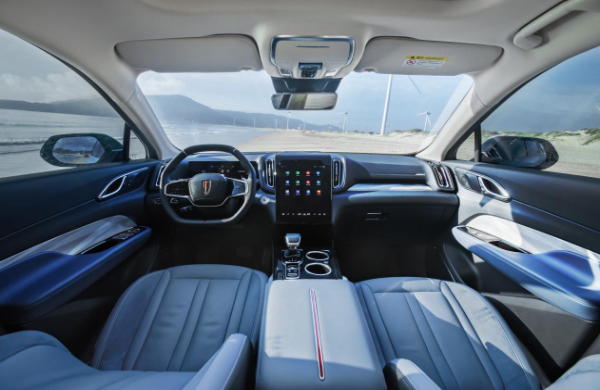 傾“新”顏值,大有風(fēng)范。紅旗HS3創(chuàng)新應(yīng)用紅旗家族式設(shè)計(jì)語(yǔ)言,車身前部,前大燈和“飛翼”飾條貫穿結(jié)合,精巧協(xié)調(diào)、富于韻律之美。個(gè)性熏黑車頂,活力四射。車身側(cè)面,矯健修長(zhǎng)的腰線配合“振翅山河”側(cè)旗標(biāo),盡顯國(guó)潮風(fēng)范。車身尾部,上下分體式設(shè)計(jì)巧妙靈動(dòng),尾燈猶如展開(kāi)的翅膀,點(diǎn)亮效果驚艷絕倫。紅旗HS3的內(nèi)飾設(shè)計(jì),在紅旗經(jīng)典中軸對(duì)稱布局基礎(chǔ)上注入強(qiáng)烈的運(yùn)動(dòng)氛圍。桶式座椅給予駕駛者極強(qiáng)的包裹感,12.6英寸曲面中控大屏和253色氛圍燈,讓風(fēng)范內(nèi)在更添精致。