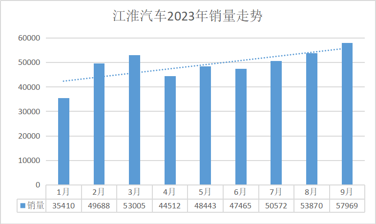 2023年10月10日,安徽江淮汽車集團(tuán)股份有限公司(以下簡(jiǎn)稱“江淮汽車”)發(fā)布《安徽江淮汽車集團(tuán)股份有限公司2023年9月產(chǎn)、銷快報(bào)》。快報(bào)顯示:2023年9月,江淮汽車銷量為5.80萬(wàn)輛,同比增長(zhǎng)21.59%,連續(xù)8個(gè)月實(shí)現(xiàn)同比正增長(zhǎng);1-9月累計(jì)銷售44.12萬(wàn)輛,同比增長(zhǎng)18.70%。