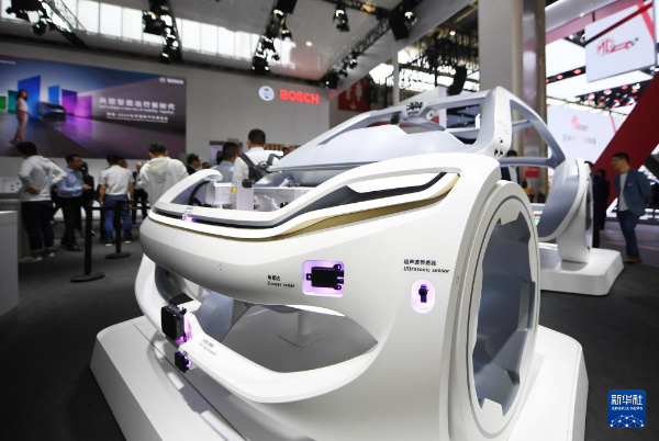 在北京車(chē)展上,博世公司展臺(tái)展出可用于新能源汽車(chē)智能出行解決方案的相關(guān)產(chǎn)品(4月25日攝)。新華社記者鞠煥宗攝