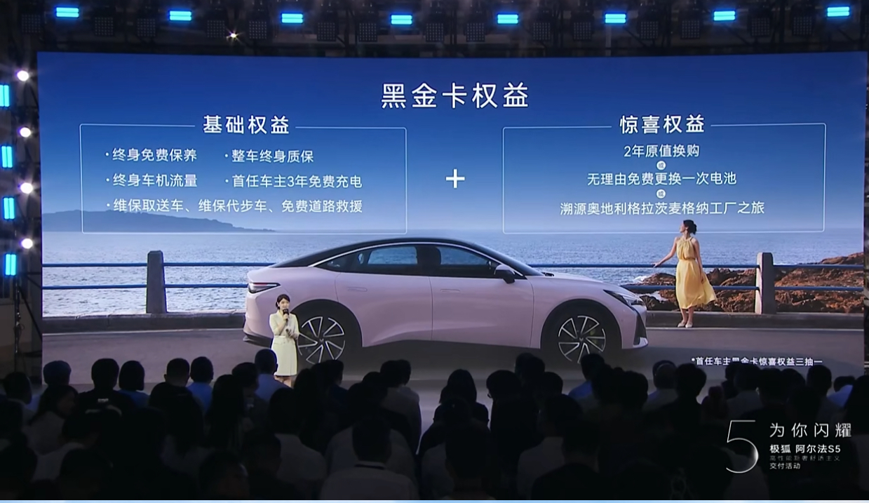 阿爾法S5交付的同時(shí),“三巨頭”還為首批用戶帶來價(jià)值不菲的黑金卡權(quán)益,包括終身免費(fèi)保養(yǎng)、首任車主3年免費(fèi)充電、免費(fèi)道路救援,以及2年原值換購、無理由免費(fèi)更換一次電池、溯源奧地利格拉茨麥格納工廠之旅等實(shí)打?qū)嵉暮枚Y,并且此后還將定期抽取幸運(yùn)用戶持續(xù)發(fā)放黑金卡權(quán)益,開創(chuàng)汽車行業(yè)交付價(jià)值感的新境界。