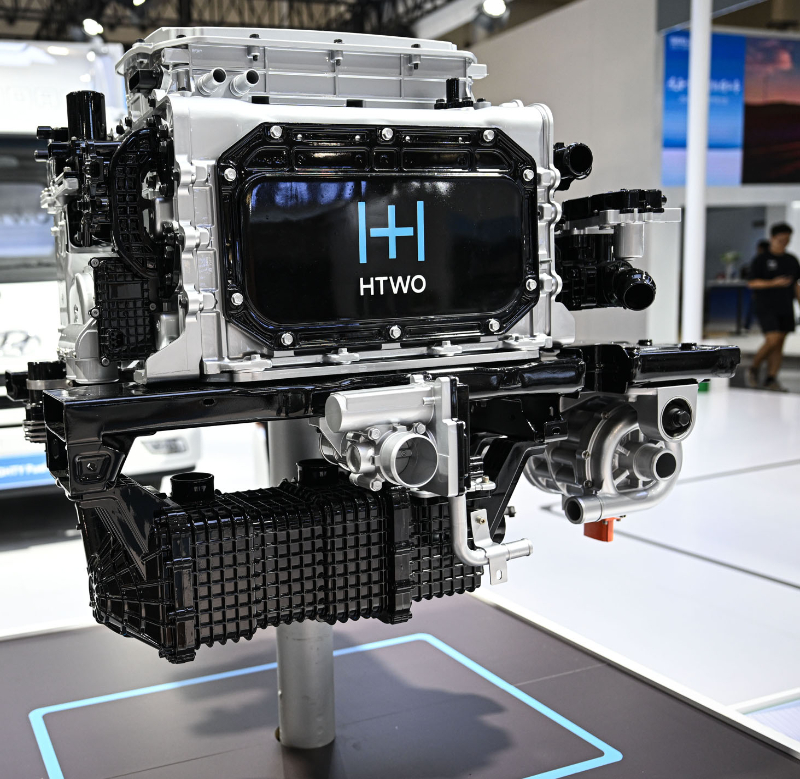 圖為在現(xiàn)代汽車集團展臺拍攝的氫燃料電池系統(tǒng)。新華社記者 蒲曉旭 攝
