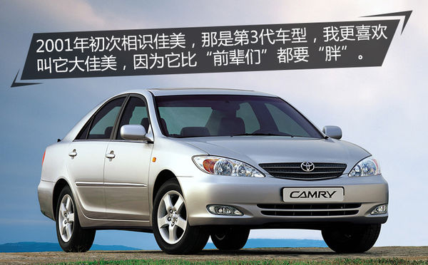 說起來,筆者與凱美瑞應(yīng)該算是“老熟人”了,最初的緣分要回憶到上初中的時(shí)候,那時(shí)候凱美瑞還是進(jìn)口車,那時(shí)候他被人們稱作“佳美”。2001那年筆者在念初三(額~~一不小心暴露了年齡),姑姑家買了一輛銀灰色的豐田佳美,那時(shí)候還不太懂車,只知道能坐上30多萬的車是一件非常值得吹牛逼的事情。