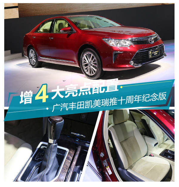 廣汽豐田凱美瑞自2006年登陸中國并實(shí)現(xiàn)國產(chǎn)以來,十年間這款車型在華累計(jì)銷量已突破150萬輛,并且是同級(jí)別車型中以最快速度完成這一目標(biāo)的。恰逢凱美瑞在華投產(chǎn)、銷售十周年之際,廣汽豐田在長春車展上發(fā)布凱美瑞十周年紀(jì)念版車型。相比現(xiàn)款凱美瑞,新車實(shí)現(xiàn)了4大配置升級(jí),其中包括自動(dòng)啟停、雙透鏡LED大燈在內(nèi)的多項(xiàng)細(xì)節(jié)提升,新車預(yù)計(jì)將在8月中旬到店上市。