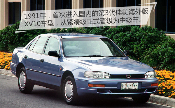 在5代之前,最先進(jìn)口引入國內(nèi)的是第3代佳美,這是非常具有歷史意義的一代車型,不但正式確立了佳美在豐田“全球車”陣營中的主力位置,還順帶打開了中國市場(chǎng)。首次進(jìn)入國內(nèi)市場(chǎng)的是第3代佳美(1991-1996)針對(duì)海外市場(chǎng)推出的XV10車型,與日本本土的V30不同,XV10從一輛緊湊級(jí)轎車“成長為”一輛B級(jí)車。