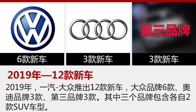 2017年進(jìn)入下半年,一汽-大眾就開始籌劃2025戰(zhàn)略,以完成更高的銷量目標(biāo)和更長(zhǎng)遠(yuǎn)的發(fā)展。同時(shí),官方還表示將在兩年內(nèi)推出23款新車,并包含大眾、奧迪以及第三品牌。此前,一汽-大眾汽車有限公司企業(yè)品牌資訊發(fā)言人、公關(guān)總監(jiān)黃龍向網(wǎng)通社表示:“在未來的車型投放方面, 2018年共有11款新品投放,其中大眾品牌7款,奧迪品牌4款?!?/p>