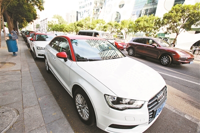 今年6月,北京CBD地區(qū)停放的EZZY分時(shí)租賃奧迪A3轎車 供圖/視覺中國(guó)
