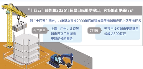房企參與城市更新有望獲得更多支持?!笆奈濉币?guī)劃和2035年遠(yuǎn)景目標(biāo)綱要明確提出,實(shí)施城市更新行動(dòng)。老舊小區(qū)改造是城市更新的重要內(nèi)容之一,我國(guó)提出,到“十四五”期末,結(jié)合各地實(shí)際,力爭(zhēng)基本完成2000年底前建成需改造城鎮(zhèn)老舊小區(qū)改造任務(wù)。住房和城鄉(xiāng)建設(shè)部有關(guān)負(fù)責(zé)人曾表示,鼓勵(lì)房地產(chǎn)開發(fā)企業(yè)參與老舊小區(qū)改造。今年以來,多省市密集出臺(tái)相關(guān)舉措推進(jìn)城市更新。除上海設(shè)立了城市更新基金以外,據(jù)報(bào)道,7月份無錫市也設(shè)立了城市更新基金,基金規(guī)模達(dá)300億元,專項(xiàng)用于投資無錫舊城區(qū)改造和城市更新項(xiàng)目規(guī)劃、建設(shè)、開發(fā)及運(yùn)營(yíng)等。此外,廣州、北京等城市也設(shè)立了與城市更新相關(guān)的基金。