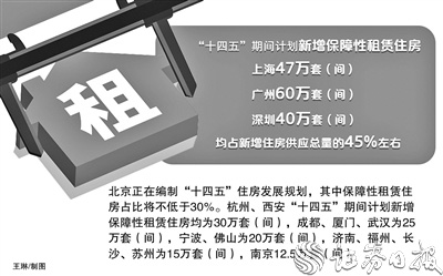 據(jù)了解,“十四五”期間,上海計(jì)劃新增保障性租賃住房47萬(wàn)套(間)、廣州計(jì)劃新增60萬(wàn)套(間)、深圳計(jì)劃新增40萬(wàn)套(間),均占新增住房供應(yīng)總量的45%左右。北京正在編制“十四五”住房發(fā)展規(guī)劃,其中保障性租賃住房占比將不低于30%。杭州、西安“十四五”期間計(jì)劃新增保障性租賃住房均為30萬(wàn)套(間),成都、廈門、武漢為25萬(wàn)套(間),寧波、佛山為20萬(wàn)套(間),濟(jì)南、福州、長(zhǎng)沙、蘇州為15萬(wàn)套(間),南京12.5萬(wàn)套(間)。
