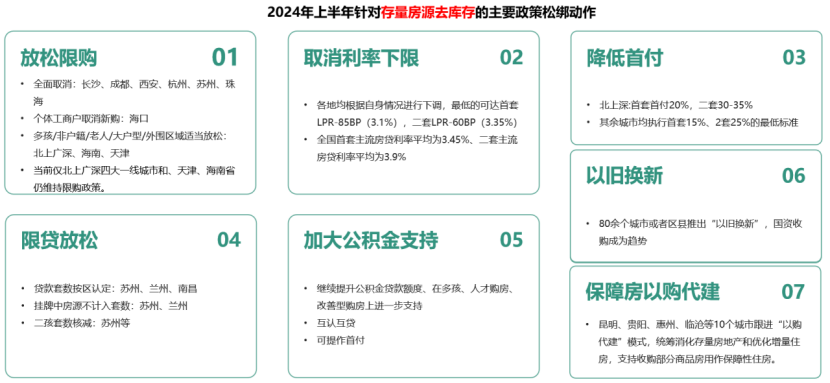 央廣網(wǎng)北京7月2日消息(記者門庭婷)2024年上半年,樓市迎來了一系列政策“組合拳”。年初,《政府工作報告》明確了今年樓市穩(wěn)市場、防風(fēng)險、促轉(zhuǎn)型的政策方向;4月30日召開的中央政治局會議為樓市進一步定調(diào),“去庫存”也成為政策的又一發(fā)力點;5月17日,居民信貸政策迎來重大利好,首付比例低至15%、取消房貸利率下限。央行推出再貸款工具支持地方國資收儲存量商品房,各地推進住房“以舊換新”……