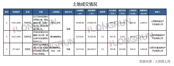 朗潤解析:本周土地成交三宗,其中SP-1614位于五龍口,本地塊約111畝,總建面約26萬,樓面價3,918元/㎡,屬中小規(guī)模體量,規(guī)劃有幼兒及小學(xué)用地,周邊多個新建和在建的居民小區(qū),人口眾多,且人文氣息濃厚,發(fā)展成熟,萬科以10.2億元拿下SP-1614五龍口一商住地,溢價率30.6%,該宗地同時還需配建5%保障房,預(yù)計未來將會是萬科在太原的另一個高端項目;HGZ-1609為小米國際項目用地;HGZ-1608位于萬柏林區(qū)南內(nèi)環(huán)西街以南、西苑南街以西、九院沙河以北、西北環(huán)高速公路以東,由路橋二公司開發(fā)案名擬為“路橋金澤華府”預(yù)計為品質(zhì)剛需項目。