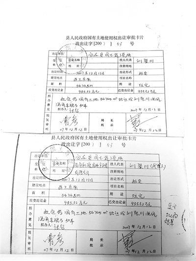 記者了解到,該土地出讓前,劉聚川與利源公司及另外一合伙人曾謀求共同出資拍賣和開發(fā)土地,但后來三方合伙人出現(xiàn)糾紛,土地歸屬開始出現(xiàn)爭議。而利源公司也反映,安平縣國土局檔案材料存在造假行為,《國有土地使用權(quán)拍賣出讓成交確認(rèn)書》、《國有土地使用權(quán)出讓審批卡片》都出現(xiàn)兩個(gè)版本。利源公司認(rèn)為,劉聚川和拍賣公司、縣財(cái)政局、縣國土局中個(gè)別人共同弄虛作假,存在偽造國土局檔案材料的重大涉法問題。
