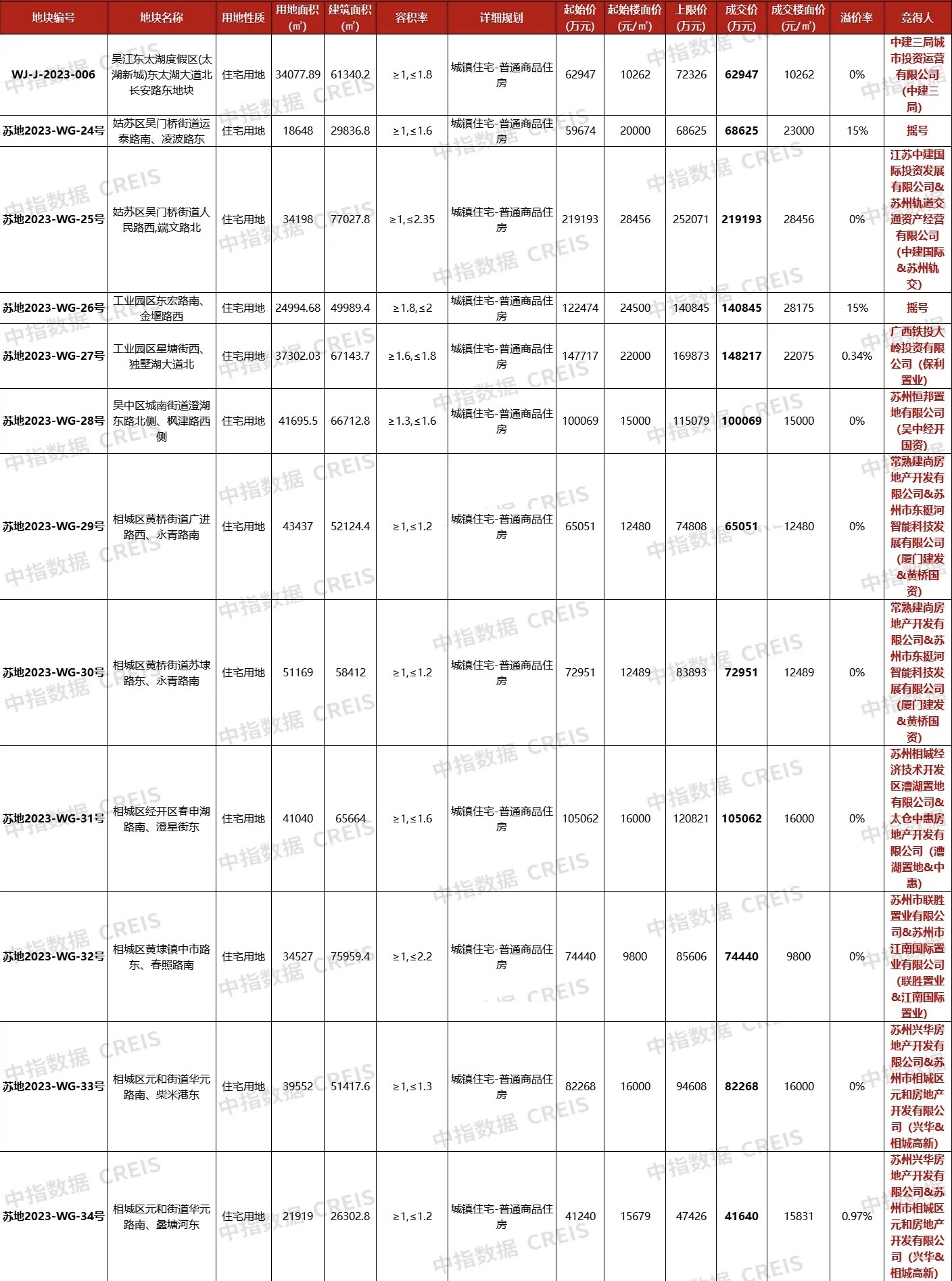 此外,相城區(qū)蘇地2023-WG-34號元和地塊由興華、相城高新聯(lián)合體以4.164億摘得,樓面價15679元/平方米,溢價率0.97%,占地面積2.2萬平方米,容積率1-1.2。