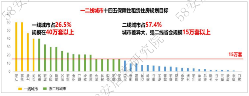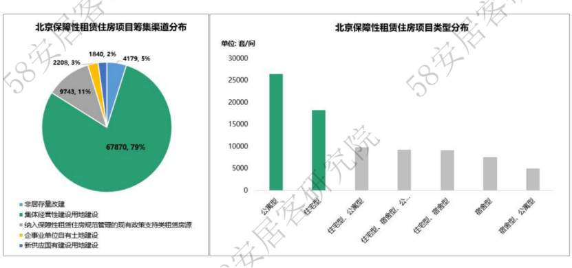 分城市來看,據(jù)58同城、安居客整理數(shù)據(jù)顯示,北京“十四五”期間,保障性住房供應(yīng)占新增住房供應(yīng)的比例達(dá)到52%。其中,保障性租賃住房規(guī)劃量最高,新增40萬套(間),占新增住房供應(yīng)比例達(dá)到40%。根據(jù)北京已披露保障性租賃住房項目情況,主要以集體經(jīng)營性建設(shè)用地新建為主,而公寓型產(chǎn)品最多。目前,已披露項目供應(yīng)集中于需求旺盛區(qū)域,如朝陽、豐臺、大興和通州。同時,項目開發(fā)主體中,國企和集體所有制企業(yè)的項目占比約80%,參與民企主要為聚焦租賃業(yè)務(wù)的龍湖、城家。
