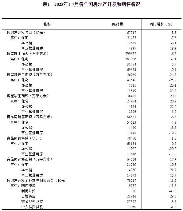 國家統(tǒng)計(jì)局:2023年1—7月份全國房地產(chǎn)市場(chǎng)基本情況