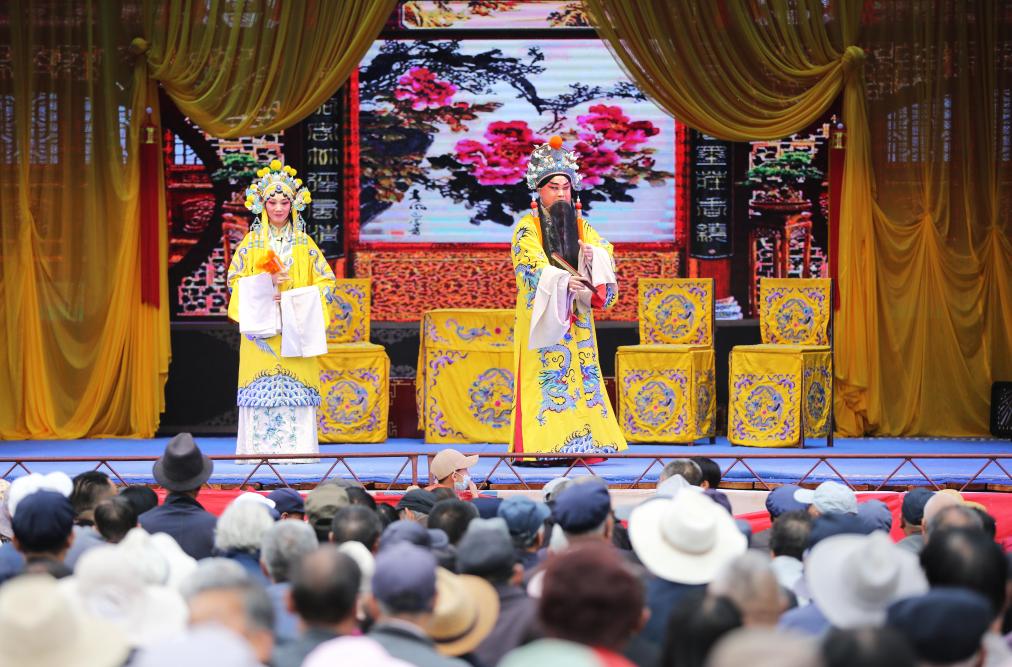 演員在甘肅省定西市體育公園演唱秦腔經(jīng)典傳統(tǒng)劇《周仁回府》(9月21日攝)。新華社發(fā)(王克賢攝)