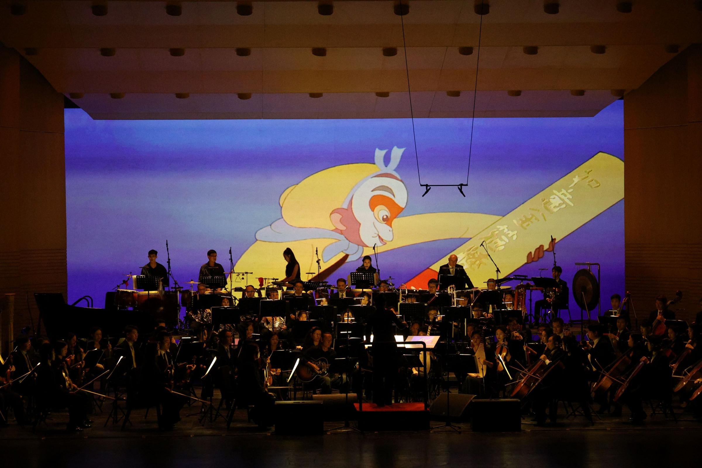 1922年,萬氏兄弟創(chuàng)作出中國首部動(dòng)畫短片《舒振東華文打字機(jī)》,開啟了中國動(dòng)畫新時(shí)代。轉(zhuǎn)眼間,百年已過,為紀(jì)念中國動(dòng)畫的傳承發(fā)展,交響舞曲《大鬧天宮》的創(chuàng)作由此發(fā)軔。這部作品以《大鬧天宮》動(dòng)畫片為基礎(chǔ),共分為“花果山美猴王”“東海得金箍棒”“官封弼馬”等9個(gè)樂章,用樂隊(duì)演奏配合影片播放的方式講述了孫悟空怒反天庭這段家喻戶曉的神話故事。