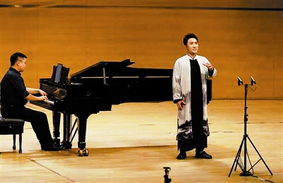 在上半場(chǎng)演出中,趙天刃演唱是以鋼琴伴奏為主,其中有一部分歌曲采用了馬頭琴、京胡、古箏等特色樂(lè)器與聲樂(lè)演唱共同表演的形式,創(chuàng)新之處為觀眾們帶來(lái)了耳目一新的藝術(shù)感受。選取的歌曲《幽蘭操》《父親的草原母親的河》《愛(ài)永在》等,更為注重專(zhuān)業(yè)性與藝術(shù)性;下半場(chǎng)由青年指揮孫敬凱執(zhí)棒天津民族樂(lè)團(tuán)擔(dān)任伴奏,所演唱的《在那遙遠(yuǎn)的地方》《阿拉木汗》《想親親》等多為地方民歌及地方風(fēng)格歌曲。整場(chǎng)演出趙天刃高亢、溫暖且具有磁性的嗓音,贏得了觀眾熱烈的掌聲。女高音歌唱家劉慧慧、于淼加盟了演出,為觀眾奉獻(xiàn)了各自的拿手曲目。(記者高麗 記者王津攝)