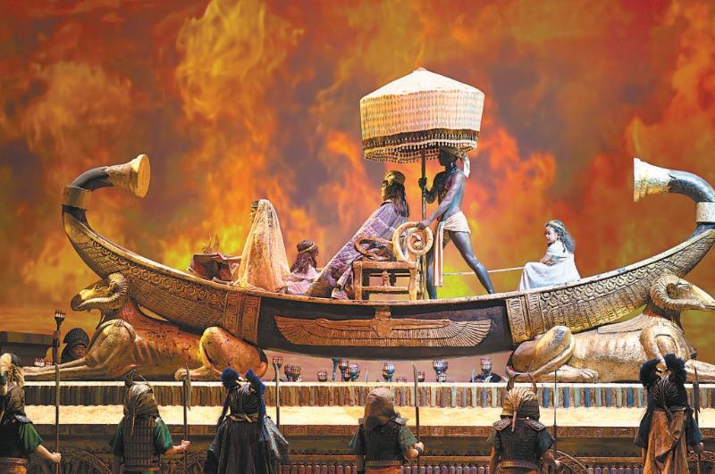《阿依達》恢弘的場景。王小京攝 柔婉哀傷的前奏曲中大幕挽起,舞臺上,沙海無垠,河灣流淌,雄偉的城邦如同海市蜃樓從遠處浮現,蒼涼壯闊的史詩氣質撲面而來……11月1日至5日,《阿依達》再次登臺國家大劇院,氣勢恢弘,撼人心魄。 以古埃及法老王時期為故事背景的威爾第歌劇《阿依達》向來因“宏大”而聞名,2015年,國家大劇院曾將這部“大歌劇”作為開年大戲重磅推出,指揮大師祖賓·梅塔親自掛帥,盛況至今令人難忘。 中外藝術家聯(lián)袂塑造傳奇群像 執(zhí)棒本輪演出的指揮名家雷納托·帕倫波深諳意大利歌劇精髓。作為一名威爾第專家,帕倫波對《阿依達》有著絕對的自信,在他的帶領下,國家大劇院管弦樂團和合唱團的表現磅礴大氣,在“起來,向神圣的尼羅河挺進吧”“光榮屬于埃及”等重要的群眾場面中,合唱團的發(fā)揮在某種程度上拔起了整部作品的精氣神。 威爾第為主要角色賦予了濃墨重彩的刻畫,他們的性格與心理充滿戲劇性和沖擊力。女主角阿依達是威爾第歌劇中最賞心悅目的角色之一,飾演阿依達的女高音蘇珊娜·布朗齊尼、孫秀葦在“祝你勝利歸來”“祖國蔚藍的天空”等詠嘆調中極力展現阿依達身處愛人與父親、私情與家國之間的兩難境地,劇烈的情緒變化、高難的演唱技巧是對歌唱家的極致考驗。 威爾第對男高音同樣“不留情”,全劇開場僅數分鐘,第一個大詠嘆調便由男主角拉達梅斯唱響,在尚未充分熱身的情況下,豪爾赫·德·萊昂、王沖兩位飾演者的英雄男高音贏得現場熱烈喝彩。 此外,掙扎在愛慕、懷疑、仇恨、嫉妒等多種情緒中的埃及公主安奈瑞斯人物形象飽滿立體,女中音阿納斯塔西婭·博爾德列娃、牛莎莎展現出了對角色的準確揣摩;達利博爾·耶尼施、張揚飾演的阿依達父親阿莫納斯洛,關致京飾演的法老王,張文沁飾演的女祭司長等角色,也都有著相當精彩的表現,他們共同塑造出了那個遠去的傳奇年代里鮮活生動的人物群像。 400人班底通力合作“大歌劇” 在舞美呈現方面,國家大劇院版《阿依達》將“大”做到了極致—— 第一幕中,巍峨如巨樓的大船緩緩前進,神廟赫然聳立,幾乎將歌劇院舞臺龐大的空間頂滿; 莊重肅穆的氣氛在第二幕著名的“凱旋”場景中達到了一次令人屏息的高峰,6把埃及小號吹響家喻戶曉的“凱旋進行曲”,一件件戰(zhàn)利品輪番展現,盛大的歡慶游行中,“羊頭”戰(zhàn)船駛出黑暗,載著英雄拉達梅斯歸來,格外震撼; 尾聲階段,泄露軍機的拉達梅斯在木乃伊巨墻下接受審判,人影矗立,色調陰暗,威嚴的壓迫感撲面而來…… “從故事背景和音樂氣質出發(fā),《阿依達》在世界各地上演時,場面一般都很盛大。”國家大劇院舞臺技術部相關負責人李斌說。當年創(chuàng)排時,舞美設計大師埃茲歐·弗里杰利奧在這一版《阿依達》中盡情揮灑他的靈感與構想,作品的體量規(guī)模之大在國家大劇院眾多制作劇目中穩(wěn)居前列,“全部4幕的布景一般要用4天運到劇院,拼接裝臺時間也要4到5天。” 李斌透露,第一幕中駛過尼羅河的大船重達10噸,需要70名工作人員把它從側幕推上舞臺;《阿依達》標志性的“羊頭”戰(zhàn)船桅桿高度則高達12.5米,進入舞臺核心區(qū)域后又被整體升起4米;審判拉達梅斯的木乃伊巨墻進行了噴砂處理,墻片重達2.5噸,再加上20名站立其上的演員,整體需動用6根能承重750公斤的吊桿才能實現懸空肅殺的藝術效果;為了有質感地還原古埃及的風土人情,1噸黃沙被鋪上舞臺,周邊的縫隙被工作人員細致封閉,以防沙子滲落干擾機械運行…… 每次演《阿依達》,歌劇院的舞臺和外圍區(qū)域被全部占滿,“就像變成了華容道游戲?!崩畋蟊扔鞯馈MǔG闆r下,一臺歌劇需要3到4位舞臺監(jiān)督協(xié)調配合,而《阿依達》需要9位,他們精確計算每一塊布景的升降推拉,一旦一個環(huán)節(jié)失誤,后續(xù)演出就難以再準確銜接,“如此龐大的體量和嚴格的安全保護措施,是對舞臺技術的巨大挑戰(zhàn)?!?/p> 自2015年首演至今8年來,《阿依達》三輪登臺,復排頻率算不上密集,技術固然是一大難點,但在李斌看來,這部真正意義上的“大戲”也需要等待一個合適的時機。這輪演出,雷納托·帕倫波、國內外歌唱家各自領銜的主演陣容以及國家大劇院管弦樂團、合唱團傾力合作,近400位藝術家和幕后工作者為氣勢磅礴的華美制作填上了與之匹配的充實內里,這是《阿依達》真正無愧于“大歌劇”之名的魅力所在。(記者 高倩) (責任編輯:盧相?。?/span> |