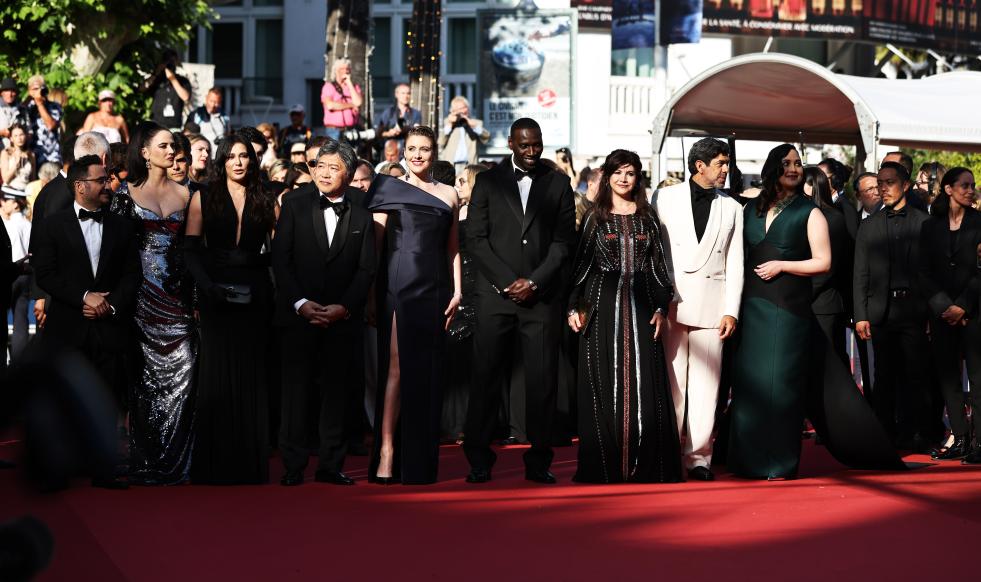 5月25日,在法國南部城市戛納舉行的第77屆戛納電影節(jié)上,主競賽單元評委抵達(dá)閉幕式紅毯。新華社記者 高靜 攝