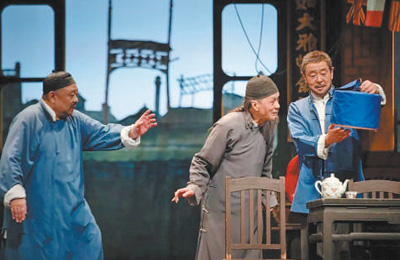 北京人藝在上海演出《茶館》劇照。北京人藝供圖