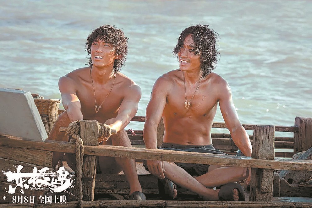 《東極島》劇照,朱一龍(右)飾演阿赑,吳磊飾演阿蕩。兄弟倆從最初為生存出海,到目睹日軍暴行后主動承擔責任,最終成為救援主力,主打“平凡人變英雄”的成長線。
