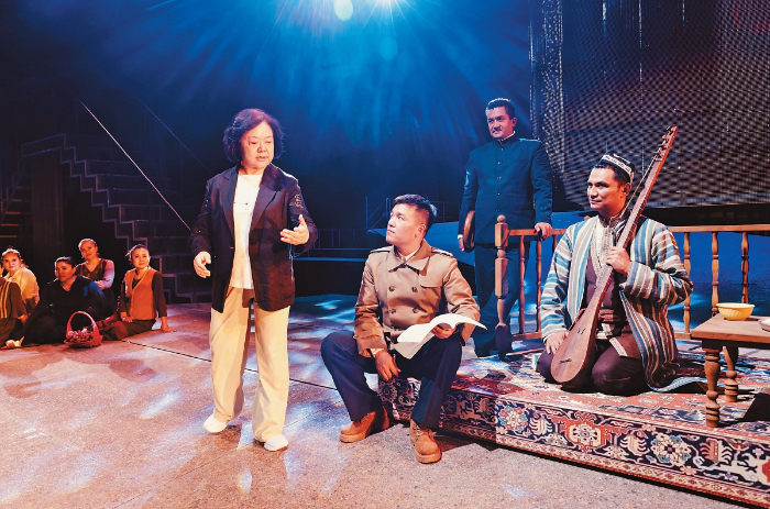 無論是《漢口茶港》中茶商抗日的英雄氣概,《奧涅金》中對(duì)真摯愛情的永恒追求,還是《原野》中對(duì)人性復(fù)雜性的深刻揭示,她的作品總能在具體故事中提煉出超越時(shí)代的價(jià)值。而對(duì)于《木卡姆戀歌——萬桐書》,她更看重作品在鑄牢中華民族共同體意識(shí)方面的現(xiàn)實(shí)意義,“無論從當(dāng)年萬桐書先生到新疆搶救木卡姆,還是我們劇組本身,我的執(zhí)行導(dǎo)演是維吾爾族,演員隊(duì)伍也是多民族的,整個(gè)劇組就是一個(gè)大家庭?!?/p>